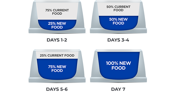 There will likely be a time when your pet will need to switch to a new food, whether it’s to a therapeutic nutrition, a new formula or they just need a food that better suits their life stage. Pets should gradually transition to new food to avoid stomach upset. Here are some tips for transitioning your pet to a new food.